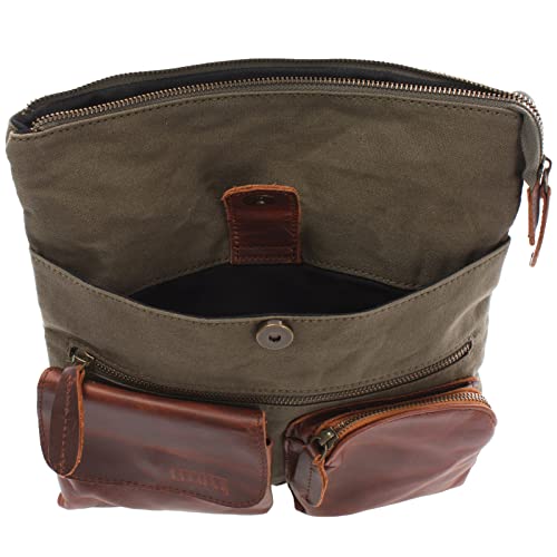 LECONI Borsa a tracolla Canvas e pelle Borsa a spalla piccolo Borsa a mano Donna + Uomo Vintage Retro 28x30x5cm marrone verde LE3011-C