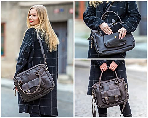 LECONI Borsa a tracolla Borsa in vera pelle in stile vintage Borsa da donna Borsa a spalla naturale Donna Borsa di pelle Borsa a mano 38x29x11cm marrone scuro LE0050-wax