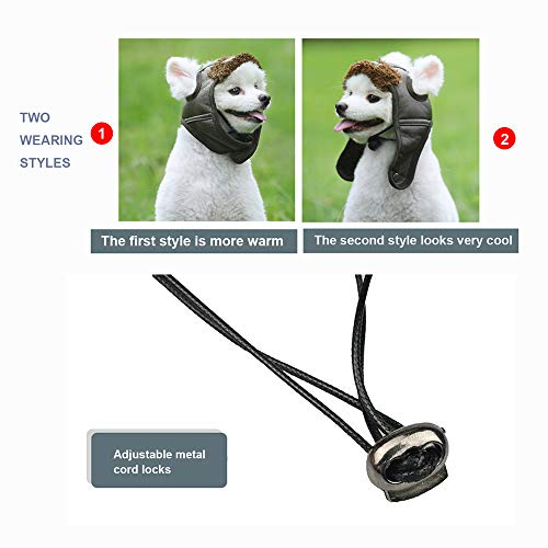 Materiale stente e antivento e calde: Il cappello da aviatore per cani è realizzato in pelle PU+cashmere teddy che è stente che può fornire un uso prolungato e una fantastica funzione antivento. Il cashmere Teddy è morbido e confortevole, mantiene il cane caldo nel freddo inverno.