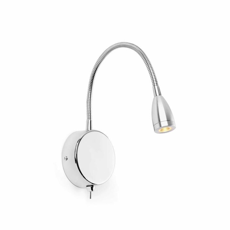 Aplique con lector cromo brillo, modelo LOKE de FARO. La fuente de luz incluida es HIGH POWER LED 3W 3000K 150Lm. Fabricado en aluminio y acero y acabado en cromo brillo. Dispone de una protección IP20
