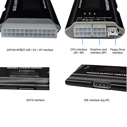 Lecxin Tester Mini Alimentatore per PC, Tester Universale ATX SATA per Alimentatore in Lega di Alluminio, Display LCD ad Alta precisione Supporta automaticamente l'allarme per ATX, BTX, ITX, TFX