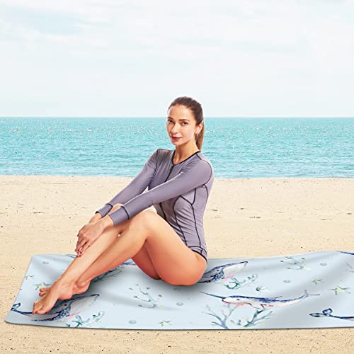 LEcylankEr Telo mare da donna, 180 x 75 cm, in microfibra, per spiaggia, ad asciugatura rapida, 360 g (balena)