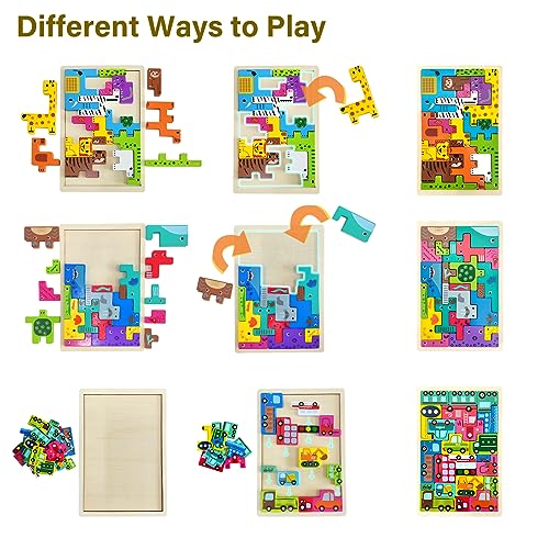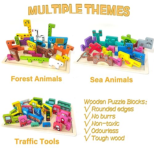 【Puzzle di legno a tetris】Il set di puzzle LEcylankEr contiene 3 stili: animali terrestri, animali marini e trasporti. Può illuminare la capacità cognitiva dei bambini e aiutarli a conoscere le cose. I puzzle sono ricchi di colori, in grado di sviluppare la percezione dei colori del bambino.