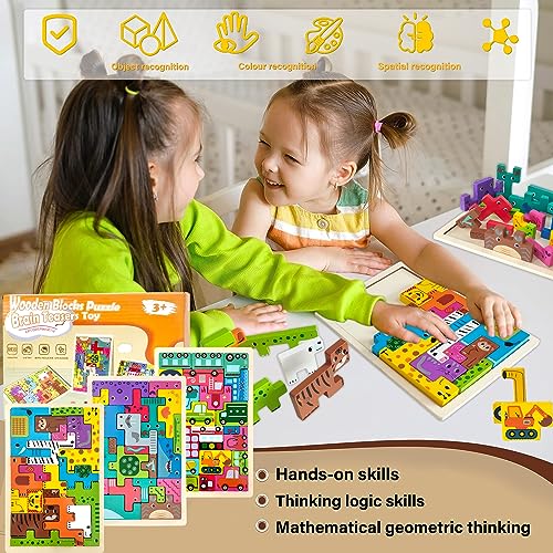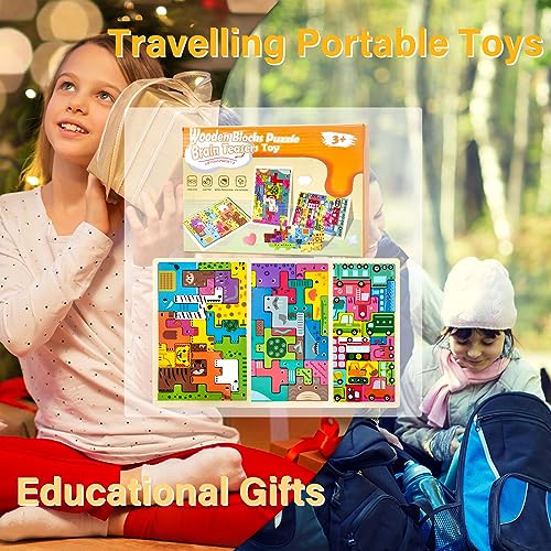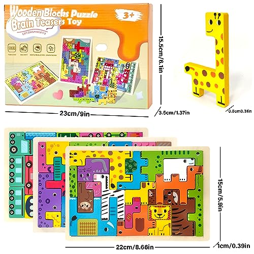 LEcylankEr PuzzleTetris Bambini, 3 Pezzi Puzzle in Legno Giochi Montessoriano per Bambini 2 3 4 Anni, Set di Puzzle Colorato, Regali di Giocattoli Educativi per Bambini e Bambina