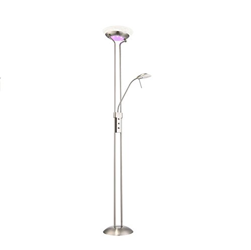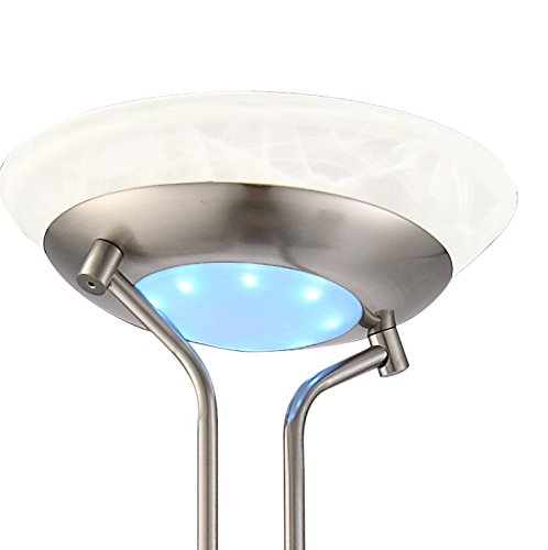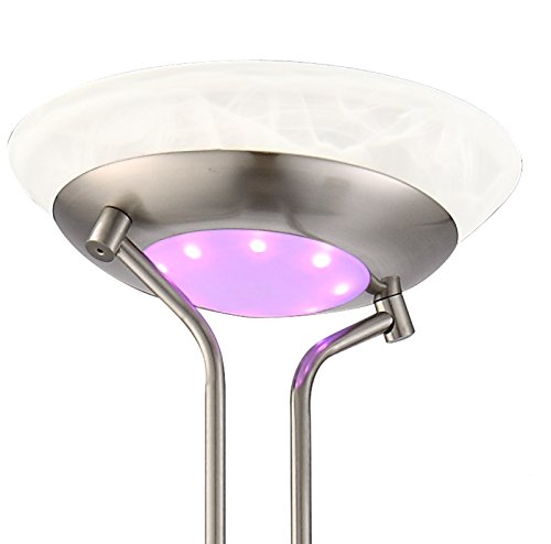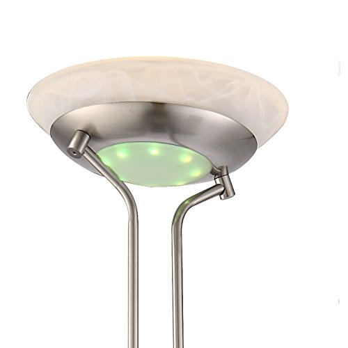 LED-lampada a piantana con colore cangiante, in metallo nichel opaco, vetro alabastrino-ottica, interruttori separati + torcia a LED in metallo