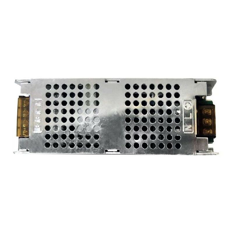 Alimentatore per LED Ledco, con le seguenti caratteristiche: Tensione: 110/240V AC 24 Vdc Corrente di CC in ingresso: 40A/230V AC Frequenza: 50/60 Hz Potenza in uscita: 200W / 8,34A Tempo di accensione: < 1S(input 230V, Io=100%) Protezione Sovraccarico/sovralimentazione: 105-150% Classe Isolamento: 1 Grado di protezione: IP20 Temperatura di lavoro: -20°/+60°C / 20% ~ 90%RH (no frost) Temperatura di stoccaggio: -40/+85°C 10% ~ 95%RH (no frost) Dimensioni: 167 x 59 x h 31 mm Peso: 328 grammi circa Filo incandescente: 650°C Raffreddamento: areazione naturale Destinazione d'uso: interni Installazione: fissaggio parete/plafone Corpo/struttura: metallo Fissaggio: con viti non in dotazione L'alimentatore è provvisto di protezione da sovraccarichi e cortocircuiti ed è dotato di regolatore di tensione. Può essere connesso facilmente alle strisce Led grazie ai morsetti a vite frontali, inoltre può essere utilizzato per alimentare altri apparecchi elettronici come router, hub, telecamere di