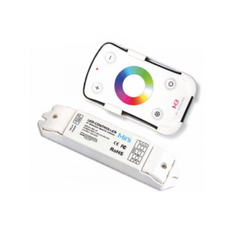 Centralina Ledco per LED RGB e telecomando touch RGB BD, con le seguenti caratteristiche: Tensione in ingresso 24/12 Vdc Classe isolamento: Classe 3 Grado di protezione IP20 Tipo telecomando: radio frequenza Potenza in uscita: 12V - 108W / 24V - 216W Corrente in uscita: 3A x canale Dimensioni: 135 x 30 x 20 mm, Output: 3 canali CT200 Ogni centralina può essere associata a più telecomandi tramite un apposito pulsante. Tipologia: Centraline Tipologia: Telecomandi Tensione: 12/24V Colorazione: Multicolor Grado di protezione: IP20