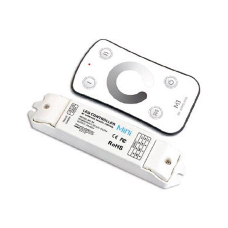 Controllare le proprie strisce led a distanza e' una bella comodita'. Grazie a questo controller 3 canali si puo' infatti, con un semplice dito, accendere o spegnere le strisce led, e nello stesso tempo regolare l'intensita' della luce. In questo modo potremo sfruttare la stessa fonte di luce per avere un illuminazione piu' soffusa e rilassante, magari durante la visione di un film, o per ottenere una luce piu' intensa, in grado di illuminare per bene l'ambiente. La centralina Dimmer RF PRO con marchio Ledco modello DM200 ha corpo e struttura realizzati in metallo e PVC. Le dimensioni sono le seguenti: 114 mm di lunghezza, 65 mm di larghezza e 26 mm di altezza per il controller e 60 mm di larghezza, 104 mm di lunghezza e 9 mm di altezza per il telecomando. L'installazione puo' avvenire ad incasso, a plafone e a parete. Non e' incluso l'alimentatore. Attraverso la centralina e con l'ausilio del telecomando a radio frequenza e' possibile ottenere il controllo fino a 50 metri in campo
