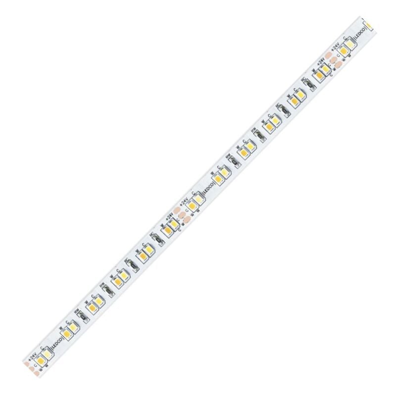 Striscia/Strip LED Ledco, con le seguenti caratteristiche: Tensione: 24 Vdc Potenza lampada: 80 Watt Flusso Lampada: 7500 lumen Temperatura di colore: 2700 - 6000 Kelvin Fascio: Simmetrico diffondente 120° Destinazione d'uso: Interni Installazione: Fissaggio Parete / Plafone Fissaggio: Con striscia adesiva in dotazione 3M 300 Corpo / Struttura: Circuito stampato flessibile Alimentatore: Non incluso da ordinare separatamente Lunghezza bobina: 5 metri, frazionabile ogni 100 mm Flusso luminoso per metro = 1500 Lumen Punti di forza: Strip led flessibile per illuminazione lineare con LED dinamico, può passare gradualmente da 2700K a 6000K Sezionabile ad interassi prefissati ogni 10 cm per la 24volt Nastro adesivo 3M sul retro. La doppia intestazione di cavi permette una connessione in serie più rapida 3 Step MacAdam L'elevata densità dei led (120 chip per metro) consente un illuminazione omogenea su tutte e le superfici Per la dissipazione termica è vivamente consigliato l'utilizzo di un