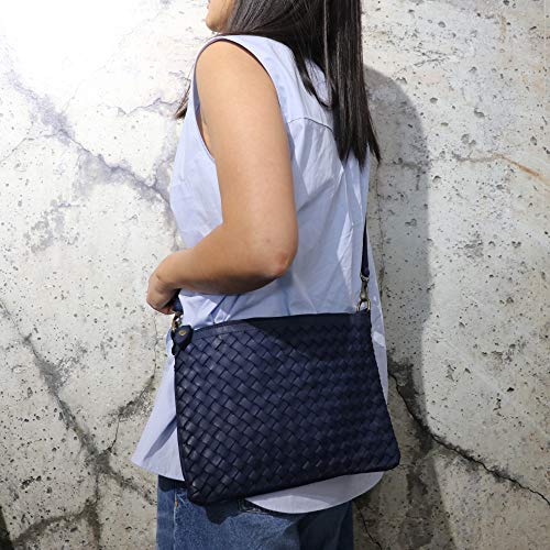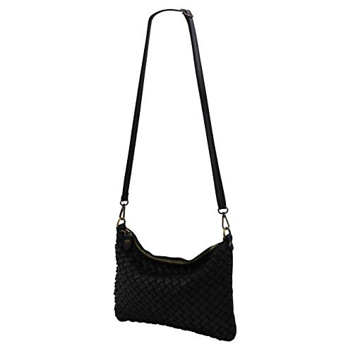 SH Leder Stella G898 - Borsa a tracolla in vera pelle bovina intrecciata, 30 x 21 cm, Nero (Nero ), Medium