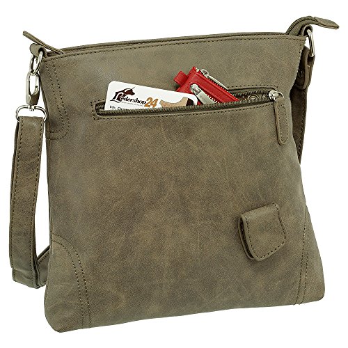 Ledershop24 Set regalo - Borsa a tracolla in finta pelle scamosciata, look usato, con chiusura a chiavistello, diversi colori, marrone (Marrone) - shoulder-handbags
