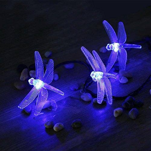 LederTEK Alimentata Solare Della Libellula Luci Leggiadramente Della Stringa 4.8m 20 LED 8 Modi Impermeabile Natale Lampada Decorativa per Scoperta, Giardino, Casa, Matrimonio, Albero Natale Festa di Capodanno(20 LED Colore di blu)