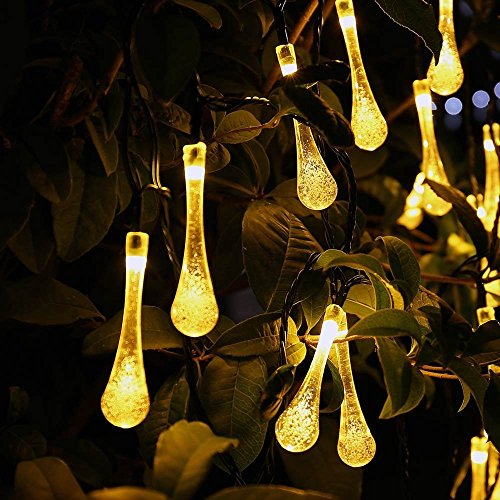 LederTEK Solar Powered goccia dell'acqua luci leggiadramente della stringa 4.8m 20 LED 8 modi impermeabile Natale lampada decorativa per scoperta, giardino, casa, Matrimonio, Albero di Natale Anno nuovo partito (20 LED Bianco Caldo)