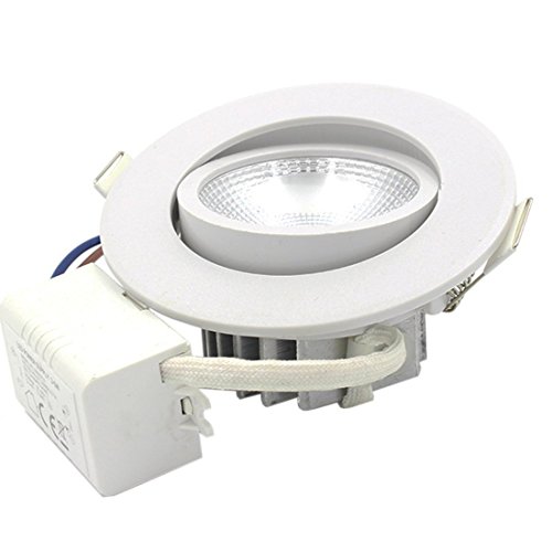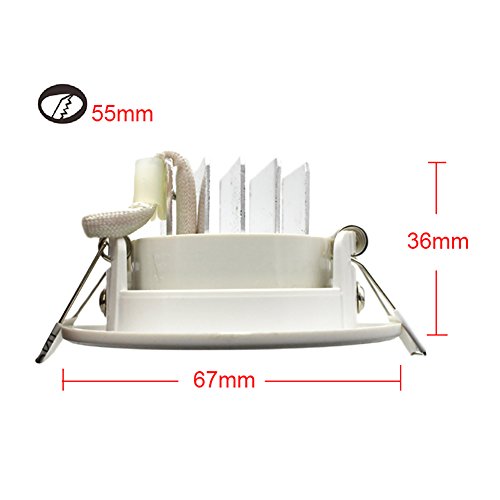 Confezione da 6, LED 3W da incasso a soffitto, corpo bianco di forma rotonda, attacco per foro da 55 mm