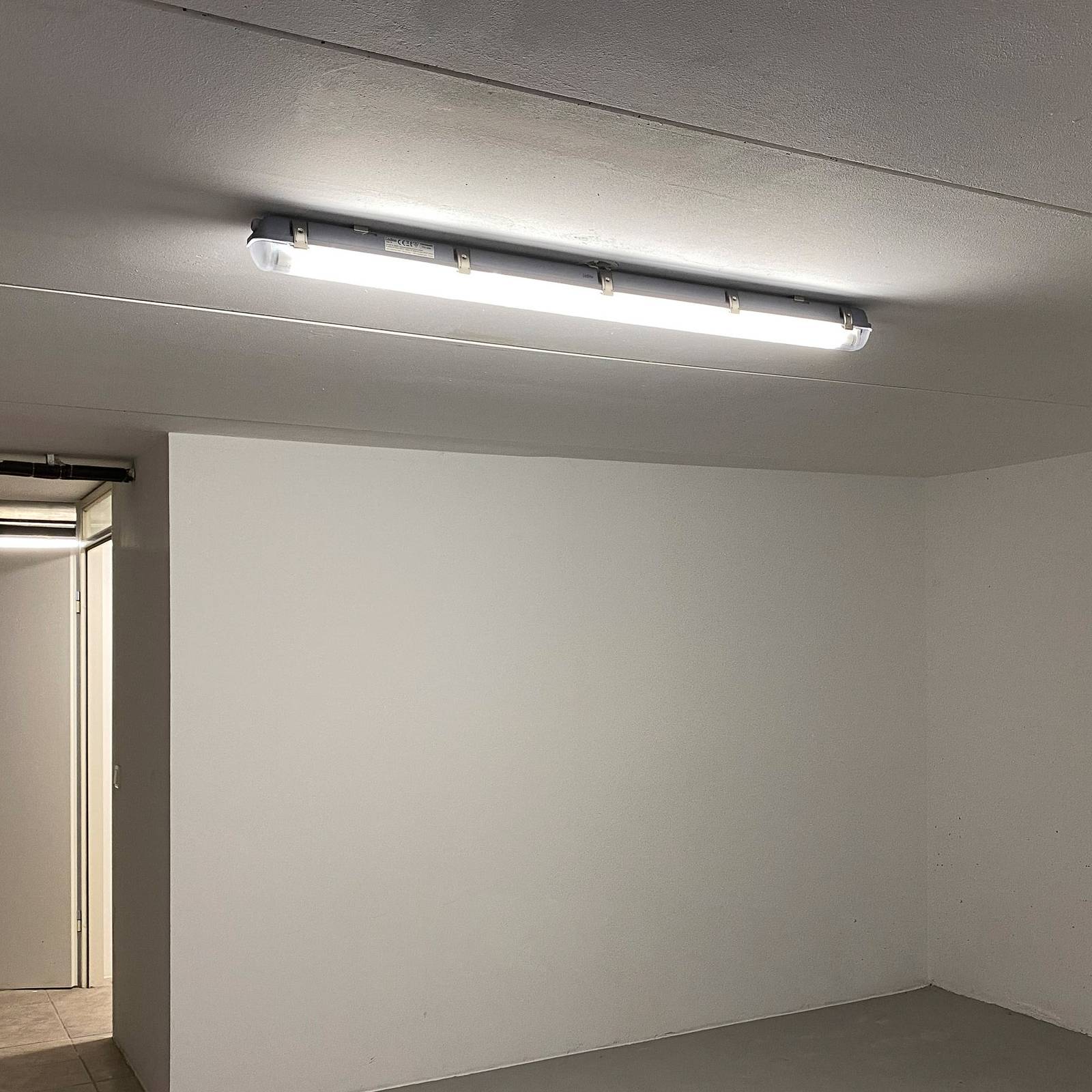 Apparecchio diffusore a LED Niehl con IP65 - adatto per stabili e da cantiere L'apparecchio Niehl a prova di umidità in plastica con cupola trasparente e clip di fissaggio in acciaio è adatto all'uso in aree a rischio di incendio secondo la norma DIN EN 60598-2-24 (D) e anche per l'illuminazione di stalle e cortili. Viene fornito completo di tubo a LED ed è protetto con grado di protezione IP65 (a tenuta di polvere e protetto contro i getti d'acqua). L'apparecchio diffusore è collegabile in cascata - più apparecchi possono essere collegati tra loro.