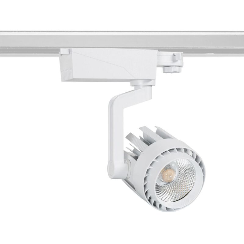 Il Faretto LED Dora da 30W Bianco per Binario Trifase fornisce un'illuminazione versatile e perfetta per ambienti sempre in continuo cambiamento dove è necessario mettere in risalto determinati elementi d'arredo o i prodotti esposti. Caratteristiche del Faretto Dora da 30W Bianco per Binario Trifase Integra una sorgente luminosa con tecnologia COB che ha un rendimento di 80lm/W. Fornisce, in un angolo di 36°, una luce di ottima qualità che assicura una riproduzione naturale dei colori. Questo tipo di luce completa perfettamente l'illuminazione generale di qualsiasi ambiente. È fabbricato con materiali di qualità come l'alluminio e incorpora componenti dalle ottime prestazioni. La sua installazione sul binario trifase è molto semplice e consente di spostare facilmente il faretto sul binario. Ciò permette di disporre di un sistema di luci molto flessibile in grado di adattarsi a qualunque ambiente. Applicazioni del Faretto LED Dora da 30W Bianco per Binario Trifase È utilizzato