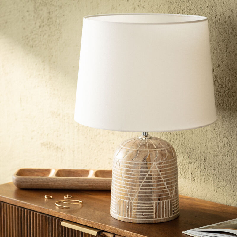 La Lampada da Tavolo Legno Koson ILUZZIA fa parte della gamma indiana del brand ILUZZIA. L'intera base di questa collezione è caratterizzata dalla qualità investita nelle materie prime, dalla sostenibilità e dal controllo delle risorse per ottenerle e dalla loro lavorazione a mano, scommettendo sempre su pezzi unici. Caratteristiche della Lampada da Tavolo Legno Koson ILUZZIA Questa lampada è composta da due parti, una base, tornita a mano in legno di mango e un paralume in cotone con base rinforzata. Per la buona qualità della materia prima e per i metodi artigianali utilizzati per la sua preparazione, non ne troverete due identici, ottenendo così l'esclusività. Nel suo design, vale la pena notare la sostenibilità del legno di mango, poiché viene tagliato solo quando gli alberi non sono più in grado di fornire frutti, riducendo così il pericolo di estinzione di alcune specie. Ha un portalampada in metallo color argento e un attacco E27, quindi sarà più facile trovare la lampadina che