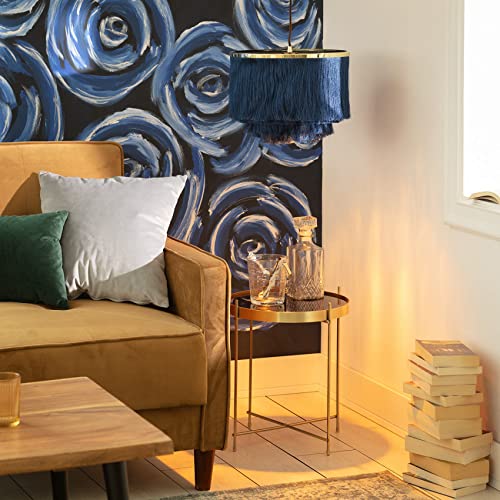 LEDKIA LIGHTING Lampada a Sospensione con Frange Metalliche Watage 260x350 mm Azzurro E27 Metallo,Tessile per Sale, Soggiorno, Cucina, Camera