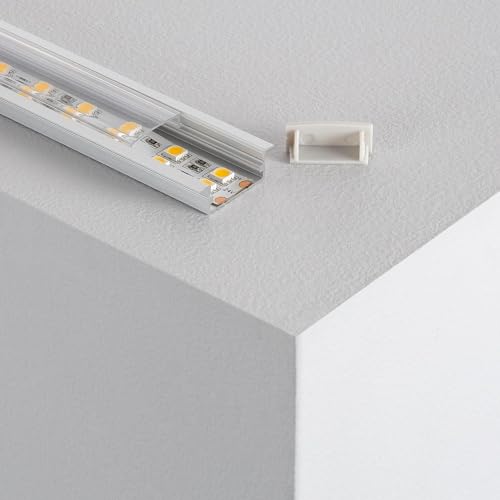LEDKIA LIGHTING Profilo in Alluminio di Incasso con Copertura Continua per Strisce Doppie LED fino a 18 mm 1 m