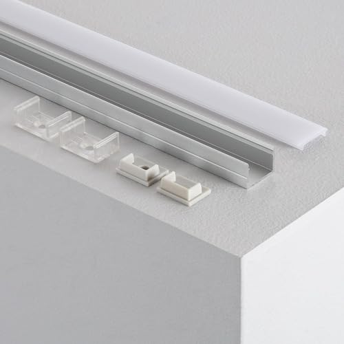 LEDKIA LIGHTING Profilo in Alluminio a Superficie con Copertura Continua per Striscia LED fino 15mm Coperchio Trasparente 2 m