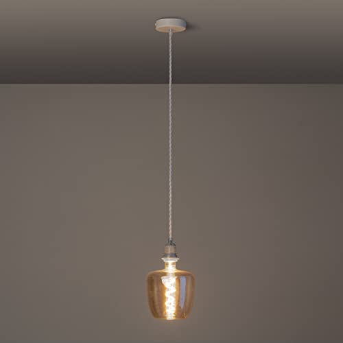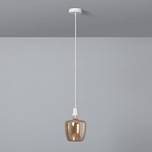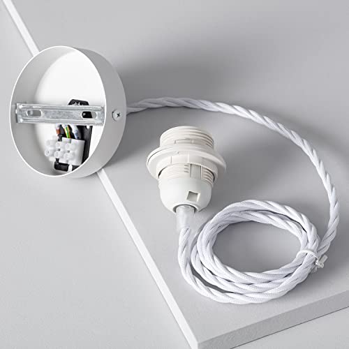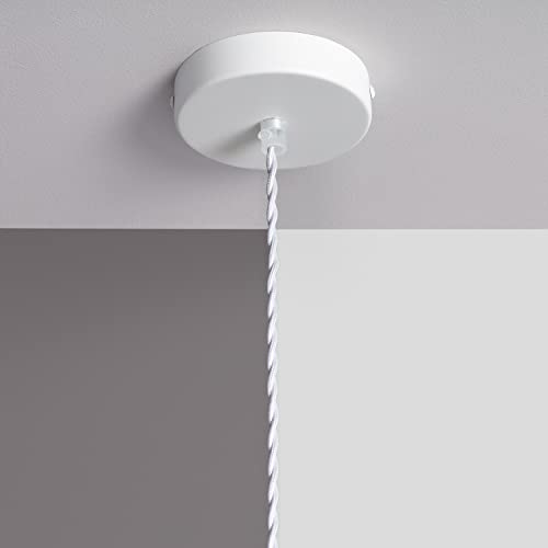 LEDKIA LIGHTING Rosone con Portalampada per Lampade a Sospensione con Cavo Elettrico Tessuto Intrecciato Bianco Bianco