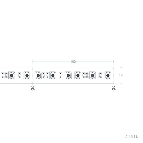 LEDKIA LIGHTING Striscia LED Regolabile 220V AC Solid 120 LED/m Bianco Caldo IP65 su Misura Larghezza 14mm Taglio ogni 10cm 14 mm120°