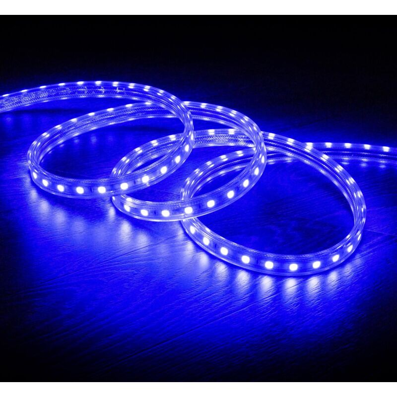 La Striscia LED 220V AC 60 LED/m Azzurro IP65 su Misura Larghezza 14mm Taglio ogni 100cm non richiede alcun tipo di alimentatore dato che si connette direttamente alla rete elettrica per mezzo di un cavo raddrizzatore. La sua flessibilità permette che si adatti a quasi qualunque superficie. Caratteristiche della Striscia LED 220V AC 60 LED/m Azzurro IP65 su Misura Larghezza 14mm Taglio ogni 100cm I 60 LED/m SMD 5050 integrati nella striscia LED consumano solo 10W al metro. Fabbricata con materiali di prima qualità, è dotata della massima protezione contro agenti esterni solidi e liquidi che si riassume nel suo indice di protezione IP65 e che la rende adatta all'uso in ambienti interni ed esterni. La Striscia LED 220V AC 60 LED/m Azzurro IP65 su Misura Larghezza 14mm Taglio ogni 100cm include un cavo raddrizzatore e un tappo terminale, componenti che si consiglia di proteggere in maniera adeguata con del silicone affinché il grado di protezione IP65 non venga compromesso. Il cavo