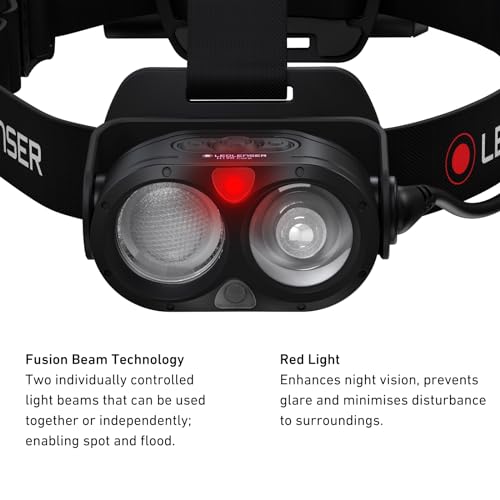 Ledlenser H19R Core Torcia frontale LED, 3500 lumen, batteria ricaricabile al litio, con luce rossa, impermeabile IP67, portata luminosa di 300m, Fusion Light, cavo di ricaricamagnetico USB