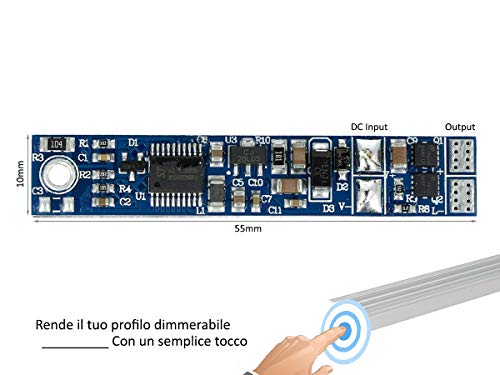 Tocca Qualsiasi Parte del Profilato Alluminio Per Accendere Spegnere e Regolare Luminosità Per Strip Bobina Led Mono Colore e Faretto Led Bassa Tensione 12V 24V