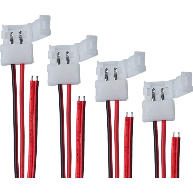 4 PZ Connettore 12mm Per Chiudere Striscia Led Smd 5050 Mono Colore Senza Saldare Connettore 12mm Per Chiudere La Bobina Led 5050 Senza Saldare - Confezione da 4 pz - Seconda Generazione, Più Pratica- - No Saldatura,Più facile da installare - DESCRIZIONE ARTICOLO: In vendita una busta con 4 connettori da 12mm per chiudere la striscia led smd 5050 senza dover saldare. Questi connettori sono ideali per le bobine MONOCOLORE. Il filo terminale in uscita è di 15cm. Questo connettore è indispensabile per chi lavora con le bobine da 5 metri tagliandole alla misura desiderata: con questo connettore, quindi, si può chiudere la bobina tagliata con un filo in uscita, senza effettuare una saldatura, per poi collegarla a 12V o all'alimentatore di led. ATTENZIONE: 1,prima di effettuare l'acquisto dei connettori, verificate con precisione che la larghezza della bobina in vostro possesso, sia della stessa larghezza dei nostri connettori. 2,questi connettori compatibili con nostre bobine led 5050