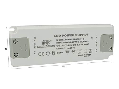LEDLUX CV8040 Alimentatore Trasformatore CV 40W 12V 3,33A Super Slim Solo 19mm Spessore (40W 12V)