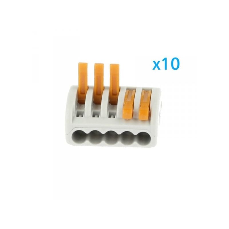 Stock da 10 Morsetti A Molla Connettori Terminali Conduttore Per Cavi Fili Elettrici Con 5 Leve/Pin/Perno,Dimensione 21x27x15mm(LxWxH) Fili Elettrici Adatto Sezione Flessibile Da 0,08 A 2,5 mmq e Sezione Rigida Fino A 4 mmq Attraverso un foro di prova,si puo misura la tensione senza rimuovere i fili Riutilizabile,Resistente alle vibrazioni e agli urti,Sicurezza elevata e Affidabile,Installazione rapido e preciso Marca LEDLUX Codice Prodotto CL0055 Utilizzo Morsetto A Molla Connettore Terminale Conduttore Modello Con 5 Leve/Pin/Perno Dimensione 21x27x15mm(LxWxH) Tensione Nominale 400V Corrente Nominale 32A Intervallo di temperatura Fino a 85°C Materiale d'isolamento Plastica Colore Grigio e Arancione Omologazione CE e RoHS SI Confezione 10 Pezzi