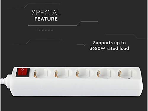 Multipresa Ciabatta Elettrica Con 5 Posti Prese e Interruttore On/Off, Colore Bianco