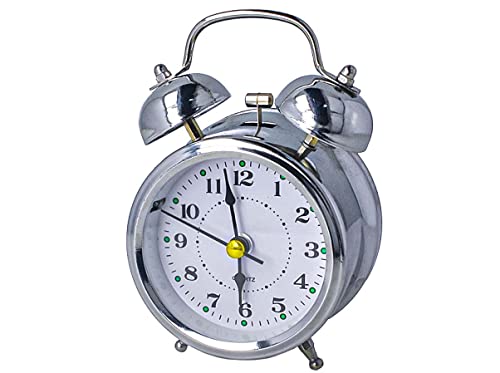 LEDLUX Sveglia Campana,Sveglia da Comodino Con Doppio Campanello,Sveglia Rumoso Classico,Modello Piccolo,Colore Argento (82X120X52mm)