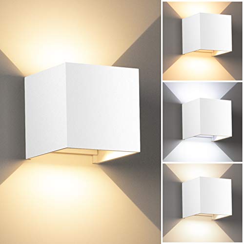 LEDMO Applique da Esterno 12W 3 Temperature di Colore(3000K-6000K) Lampada da Parete Interno/Esterno Angolo del Fascio Regolabile Lampade da Parete IP65 Impermeabile(Bianco)