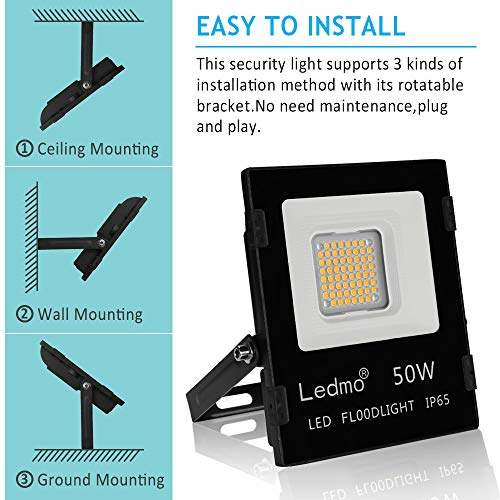 LEDMO Faretto led esterno 50w 2700K bianco caldo faro led ip65 SMD3030 4500LM farettI led esterno per giardino AC85~265V