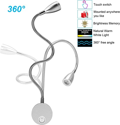 Ledmo Lampada da Lettura con 360° Braccio Flessibile 2 Pezzi lampada lettura, lampada da lettura led AC 85-265V 3W Lampada Lettura in Alluminio(Bianco Caldo)