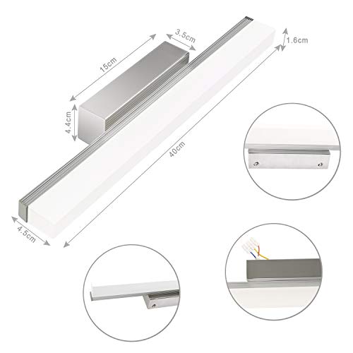 ☀【IP44 Impermeabilità】Lampada specchio bagno è realizzata in alluminio + acciaio inox, con una lunghezza totale di 40 cm. Ha un grado di impermeabilità IP44, polvere e nebbia, e può essere utilizzata in sicurezza in bagni o altri ambienti interni umidi.