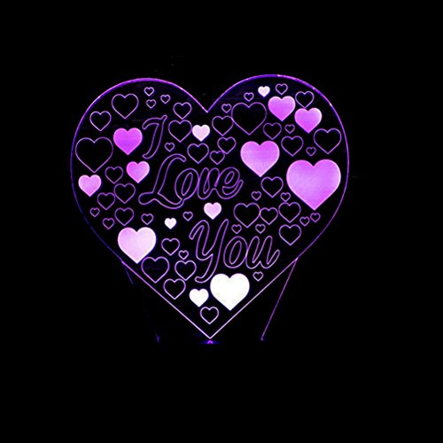 Ledmomo - Lampada 3D per illusione notturna, 7 colori, cambiamento a forma di cuore, forma a LED, lampada USB, per amanti di San Valentino, regalo