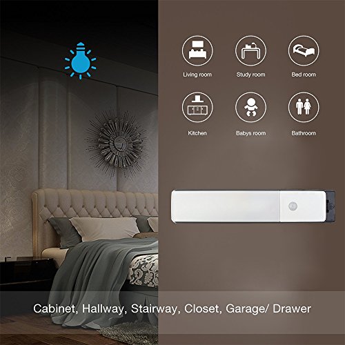 Rilevatore di movimento: la lampada da armadio si accende quando si compare nella gamma di 3 metri al buio, e dura 20 secondi se nessun movimento, il LED si spegne. E se continueremo a muoversi, continuerà ad accendere.