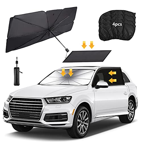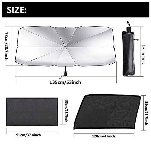 Ledph para Sole per Macchina Parabrezza, Parasole Ombrello Auto, Copricruscotto Auto Interno con 1pcs Parasole per Tetto Apribile e 4pcs Tendine Parasole Auto Finestrino Laterale,135x73cm