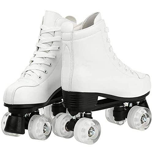 Ledph Pattini Professionali a 4 Ruote, Pattini Quad da Strada con Ruote Luminose, Pattini a Rotelle Ragazza 4 Ruote, Pattini a 4 Ruote da Strada, per Principianti Adolescenti,Bianca,39
