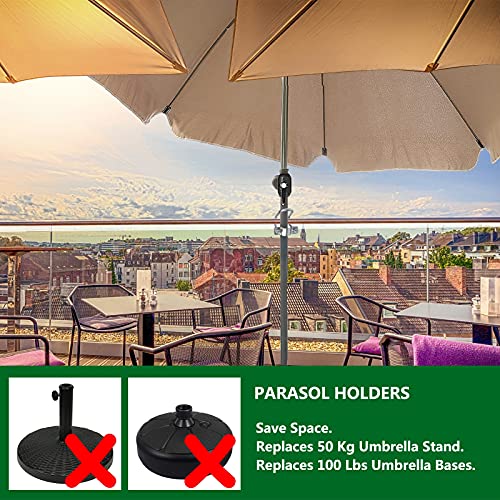 Sostituzione Perfetta: Questo supporto ombrellone ringhiera è la variante salvaspazio quando si monta un ombrellone da balcone e il sostituto perfetto per le basi dell'ombrellone per impieghi gravosi.