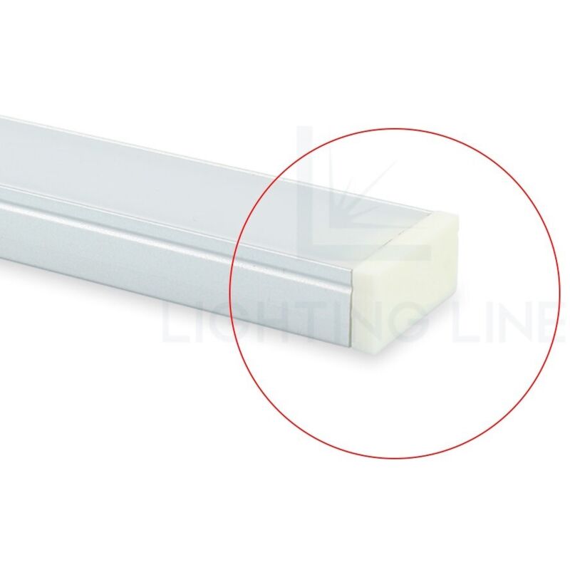 Tappo terminale bianco per profilo rettangolare barra da 3 mt SENZA FORO per uscita cavo alimentazione.