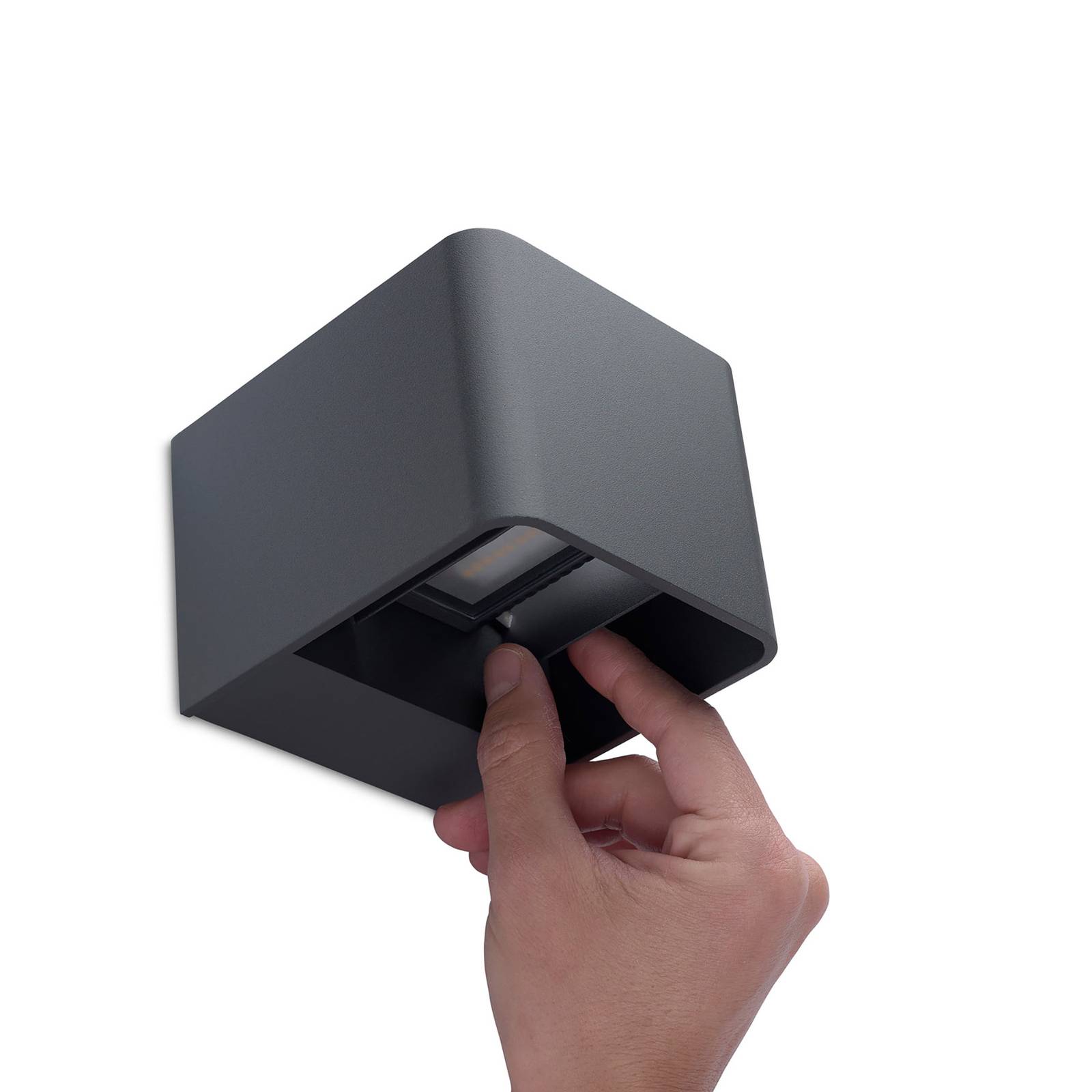 Lampada da parete a LED Wilson con viti a scomparsa L'apparecchio da parete a LED Wilson si dimostra un'illuminazione decorativa e luminosa della facciata e, grazie al suo grado di protezione IP65, può essere utilizzato ovunque all'esterno senza esitazioni. Il particolare design dell'apparecchio rende le viti invisibili. Wilson è realizzato in alluminio di elevata purezza e quindi resistente. I LED incorporati sono coperti da un diffusore in vetro smerigliato che permette alla luce di uscire verso l'alto e verso il basso senza abbagliamento. Così, ogni facciata è illuminata in modo ottimale. - dotato di protezione UV - incl. ECG