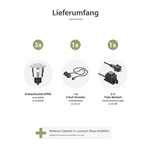 Ledscom.de Apparecchio da incasso a pavimento a LED ATRIA per esterni in alluminio bianco freddo, 14lm ciascuno, IP65, 40mm Ø Set di 3