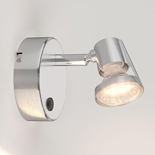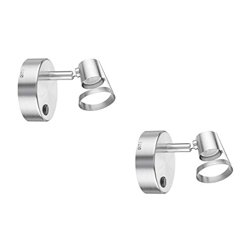 Ledscom.de Applique LEONIS, interruttore, acciaio inox opaco, rotondo, 1x GU10 max. 25W, 2pz.