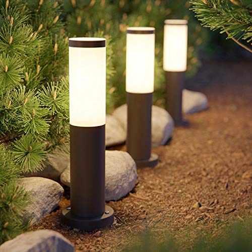 Ledscom.de Dissuasore luminoso PORU nero con picchetto di terra, per esterni, in acciaio inox, rotondo, 38,5cm, incl. lampada E27 6,269W bianco caldo ciascuno 919lm, 2pcs.