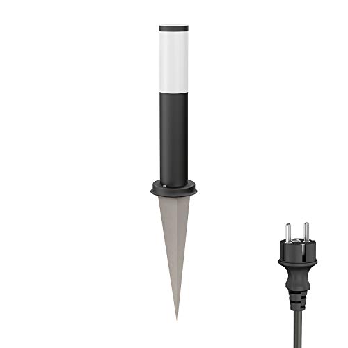 Ledscom.de Dissuasore luminoso PORU nero con picchetto di terra e cavo di 2m per esterno, acciaio inossidabile, rotondo, 38,5cm, presa E27