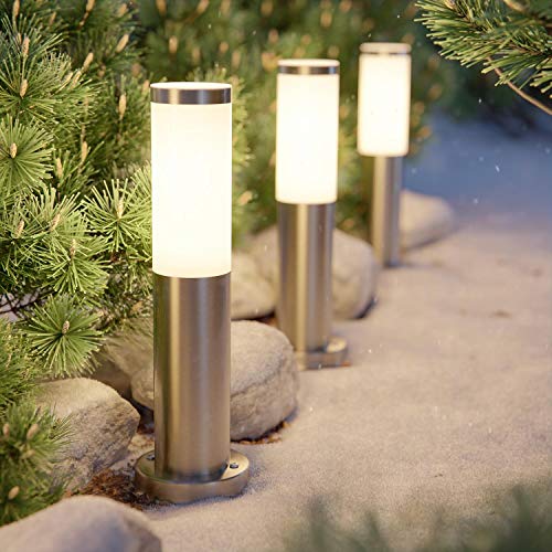 Ledscom.de Dissuasore luminoso PORU con picchetto di terra e cavo da 2 m, resistente alle intemperie, in acciaio inox, rotondo, 38,5 cm, incl. lampada E27 6,269W bianco caldo ciascuno 919lm, 3 pezzi.